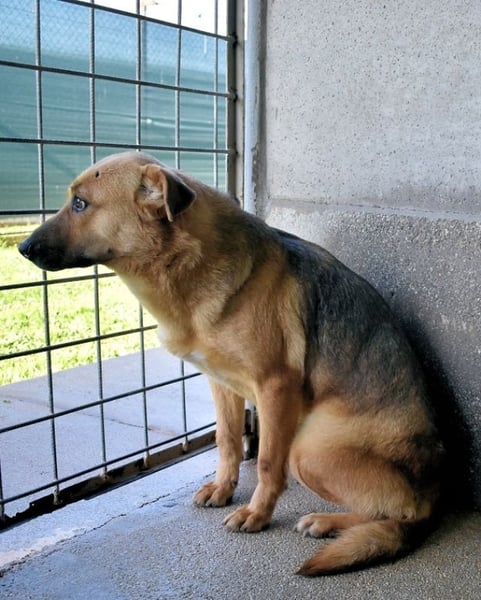 Alphonza, das zarte Hundemädchen mit dem Blick wie ein verwischter Aquarellfleck, hat Angst.