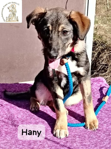 Mit ihren Geschwistern hat sie bisher in einer Hundegruppe gelebt und dabei wichtige soziale Fähigkeiten gelernt. Sie versteht sich gut mit anderen Hunden und genießt den Kontakt zu Menschen sehr. Alles, was für uns Alltag ist – Stubenreinheit, Leinenlaufen, Regeln im Haus – muss Hany allerdings noch von Grund auf lernen. Sie startet praktisch bei null, und die Erziehung beginnt erst mit dem Einzug in ihr neues Zuhause.