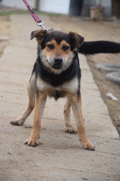 Dorci ist eine Mischlingshündin, die ca. im September 24 geboren wurde und eine Größe von etwa 45 cm hat. Sie lebte auf der Straße, wo sie aufgrund ihrer Scheu zunächst nicht gesichert werden konnte. Vier Tage später, als sie sehr erschöpft war, gelang es uns endlich, sie in Sicherheit zu bringen. Wir wissen nicht was der Grund war - möglicherweise ist in der Nacht zuvor irgendwas passiert. Im Tierheim hat sie erst einmal zwei Tage lang geschlafen.