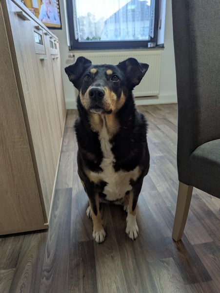 Zuhause bei einer Familie, doch nun sucht die sanfte Hündin aufgrund von familiären