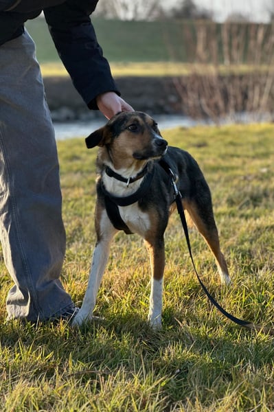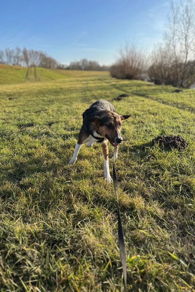 Tagsüber ist sie bereits stubenrein, nur nachts macht sie aktuell noch mal ins Haus. Hier braucht es weiterhin liebevolle, aber konsequente Unterstützung, um ihr die Sicherheit zu geben, die ihr aktuell möglicherweise noch fehlt.