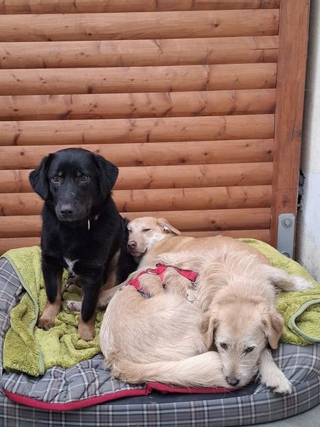 Maria ist Mitte November nach Weilerswist in ein freies Pflegekörbchen gezogen. Sie ist leider aktuell immer noch sehr ängstlich und macht nur ganz kleine Schritte in ihrer Entwicklung. Langsam fasst sie Vertrauen, da sie nicht mehr wegrennt wenn man sich ihr nähert und sich streicheln lässt. Sogar Futter nimmt sie mittlerweile aus der Hand. Sie versucht auch auf einen zu zugehen bzw. hinterher, aber im letzten Moment macht sie dann doch noch einen Rückzieher. Sie beobachtet alles sehr genau, laute Geräusche sollte man aktuell noch vermeiden. Sie ist sehr interessiert an der weiteren Pflegehündin Coco. Daran kann man aufbauen. An der Leine laufen funktioniert noch nicht, da legt sie sich lieber im Garten hin und schaut sich um. Aber das Geschirr lässt sie sich problemlos anlegen, denn das Raustragen geht dann besser. Aber am liebsten will sie dann schnell wieder rein ins Haus, in Sicherheit. Aber mit viel Geduld wird es besser werden. Maria braucht Menschen, die ihr weiterhin zeigen, dass sie keine Angst haben muss und das sie immer mehr lernt, wie schön das Leben sein kann. Da Maria als Welpe ins Tierheim kam, hat sie dort leider gar nichts gelernt und wenig Kontakt zu Menschen gehabt. Das ist auch der Grund, warum man nun mit Maria viel aufarbeiten muss.