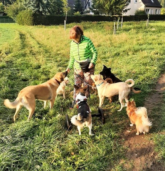 dem sie sicher und fröhlich unterwegs ist. Spaziergänge mit anderen Hunden oder