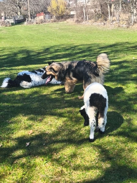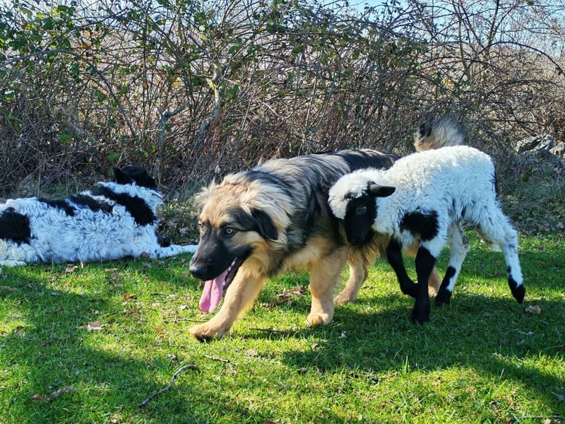 Auf seiner Pflegestelle zeigt Ozzy jeden Tag, was für ein sozialer und ausgeglichener Hund er ist. Er lebt dort ganz selbstverständlich mit anderen Hunden, Katzen und kleinen Kindern zusammen. Besonders rührend ist zu sehen, wie vorsichtig und respektvoll er sogar mit einem kleinen Lämmchen umgeht, das dort gerade aufgepäppelt wird.