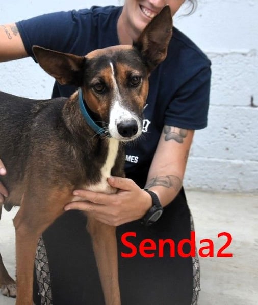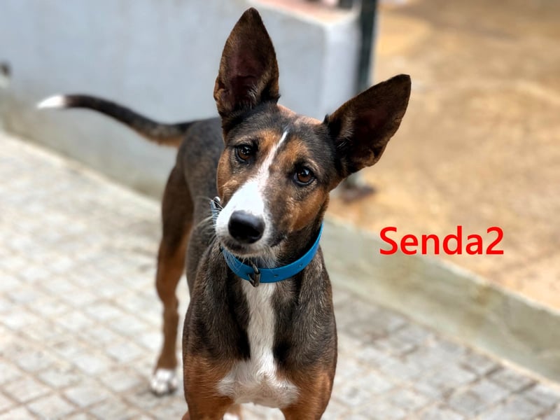 Die Geschichte von Senda2 ist kurios. Sie saß einfach eines Tages vor der Tür des Tierheimes und hat dort gewartet. Sie wurde entdeckt, weil das Tierheim mit einer Kamera überwacht wird. Sie saß da und wartete darauf, dass jemand kam und die Tür auf gemacht wurde. Dann ist sie einfach eingetreten. So, als hätte ihr jemand verraten, dass sie dort in Sicherheit sein wird. Senda2 ist sehr freundlich, sozial, sehr süss und verspielt. Im Moment ist sie auf einer Pflegestelle. Dort hilft sie einer ängstlichen Hündin gerade dabei, selbstbewusster zu werden. Senda2 ist da sehr besonders und einzigartig und macht das ganz toll. Was ihr jetzt zu ihrem Glück noch fehlt, ist eine eigene Familie, die sie adoptiert und ihr ein Für-immer-Zuhause schenkt.