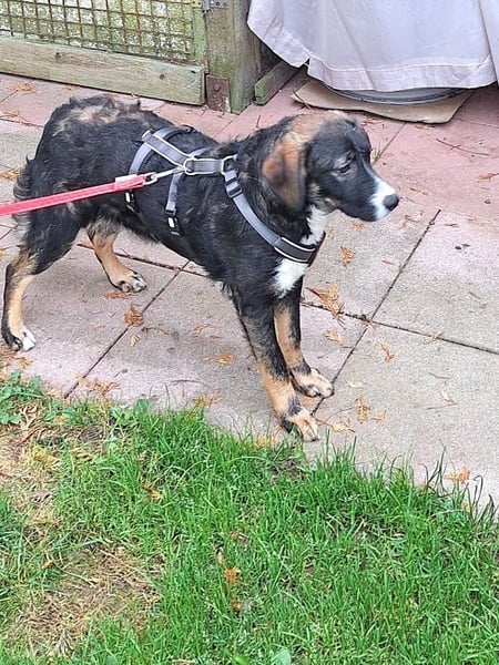 Draußen Gassigehen ist noch nicht so ganz ihr Ding, aber auch das wird auf ihrer Pflegestelle weiter mit ihr geübt, genauso wie die Stubenreinheit.