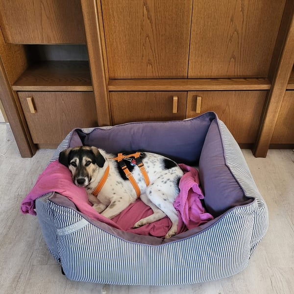Bella ist eine liebe Hündin, die aber ausgelastet werden möchte. Eine Runde um den Block reicht ihr bei weitem nicht aus. Vielleicht hätte sie auch Spaß an Hundesport, Agility oder Canicross oder auch Mantrailing. Auch wenn Bella grundsätzlich verträglich mit Artgenossen ist, sollte sie doch als Einzelhund vermittelt werden, sie liebt es wenn sie die ungeteilte Aufmerksamkeit erhält. Große Kinder wären kein Problem für sie. Bella fährt gut im Auto mit und geht sehr gerne Spazieren, sie liebt Wasser. Beim Spaziergang sollte man ein Auge auf sie haben, da sie gerne aufsammelt was sie findet und es auch gerne frisst. Leider muss Bella jeden Tag eine Tablette bekommen, da sie wohl durch die Kastration inkontinent geworden ist, welches aber durch die Tablette gestoppt wird. Sie sucht die Nähe der Menschen und liebt es in ihrem Körbchen zu kuscheln. Sie ist sehr lieb und bildhübsch. Bella wurde ca.02/ 2024 geboren, wiegt ca.15 Kg und ist ca.50cm hoch. Natürlich ist sie geimpft, gechipt und hat einen EU-Pass im Gepäck.