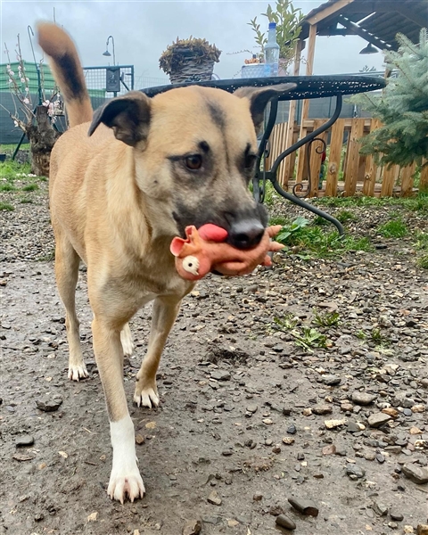 Cassie kam Anfang Oktober mit ihrem Sohn Momo zu uns in die Pension. Zwei Hunde, die sich nicht anfassen ließen und Menschen gegenüber skeptisch waren. Cassie hat eine so tolle Entwicklung gemacht, sie vertraut uns und ist zu allen Menschen freundlich. Man kann bereits mit ihr mit Geschirr spazieren gehen. Sie orientiert sich gut an dem Menschen, da das eine oder andere jedoch noch Angst bereitet. Selten habe ich einen Hund gesehen, der in so kurzer Zeit Vertrauen zu uns gefasst hat und lieber das Futter stehen lässt, bevor sie keine Streicheleinheiten bekommt. Cassie wird auf knapp zwei Jahre geschätzt, kommt ursprünglich aus Rumänien von der Straße und wurde dort im August in einen Shelter gebracht. Sie ist gechippt, geimpft, entwurmt und Krankheiten sind nicht bekannt. Sie hat ein liebevolles Wesen, braucht aber viel Geduld, Liebe und Sicherheit. Ihr Verhalten kleinen Kindern gegenüber konnten wir noch nicht testen, auch was Katzen betrifft, können wir keine Aussage treffen