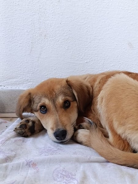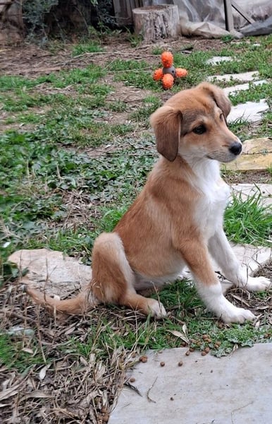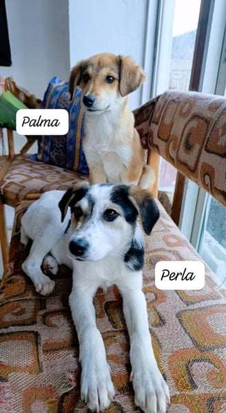 Palmas Geschichte: Die fünf Welpen Puerto Rico, Paola, Palma, Perla und Padma wurden außerhalb eines Dorfes bei Drama am Straßenrand entdeckt. Die kleinen Hunde irrten orientierungslos umher und liefen immer wieder auf die Straße – eine gefährliche Situation. Eine Tierschützerin wurde informiert und machte sich sofort auf den Weg, um die Welpen zu sichern. Als sie ankam, bot sich ihr ein trauriges Bild: Die Welpen waren für ihr Alter viel zu dünn und sehr klein. Vermutlich hatten sie sich über längere Zeit allein durchschlagen müssen. Eine der Welpen hatte besonders großes Pech: Sie wurde von einem Fahrzeug erfasst und erlitt eine Lähmung der Hinterläufe. Der kleine Hund wurde sofort zum Tierarzt gebracht und bleibt dort vorerst in Behandlung. Die anderen vier Welpen – darunter die kleine Palma – konnten an einen sicheren Ort gebracht werden. Dort werden sie nun versorgt, bekommen endlich regelmäßiges Futter und dürfen sich ein wenig von dem Schock der vergangenen Tage erholen. Wir vermuten, dass die Welpen nicht aus demselben Wurf stammen, sondern sich draußen zusammengefunden haben.