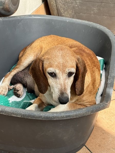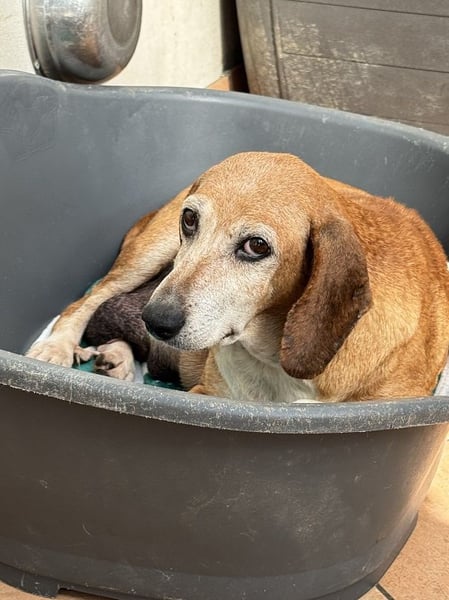 Die gute Nachricht zuerst: Silke, unsere geschätzt 10-jährige Jagdhund Mischlingshündin sowie ihre 4 Babies Sandorah, Sady, Salvina und Sajoscha (3 Mädchen und ein Junge) wurden von einer Tierschützerin gerettet und sind in Sicherheit. Es geht ihnen gut, sie sind alle gesund und munter. «Munter» gilt vor allem für die vier Wonneproppen, Silke nimmt es gemächlicher und gewöhnt sich langsam an ihre neue Situation.