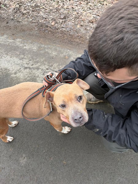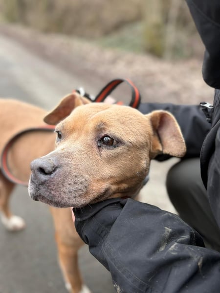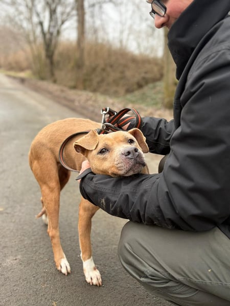 Wir haben unsere zauberhafte Zelma vor Ort besucht und konnten uns wieder einmal von ihrem unglaublich menschenzugewandten Wesen überzeugen. Die 10-jährige Staff-Mix-Dame genießt jede noch so kleine Aufmerksamkeit und hätte sich am liebsten den ganzen Tag durchkraulen lassen.