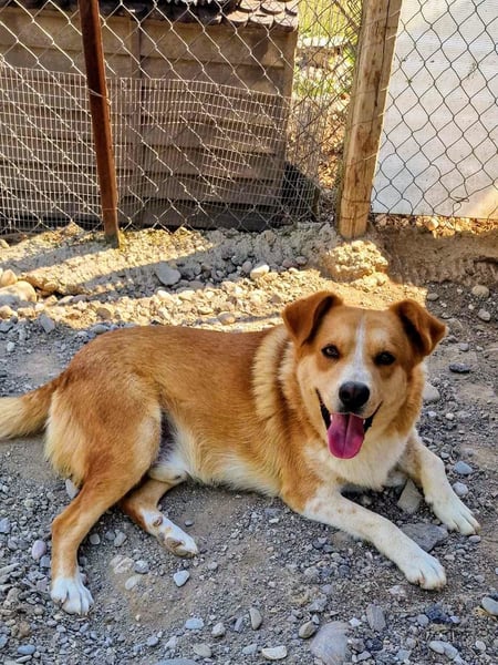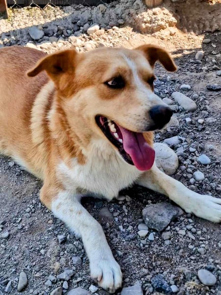 Seit seinem 4 Lebensmonat lebt er mit einer Gruppe anderer Hunde im Shelter.