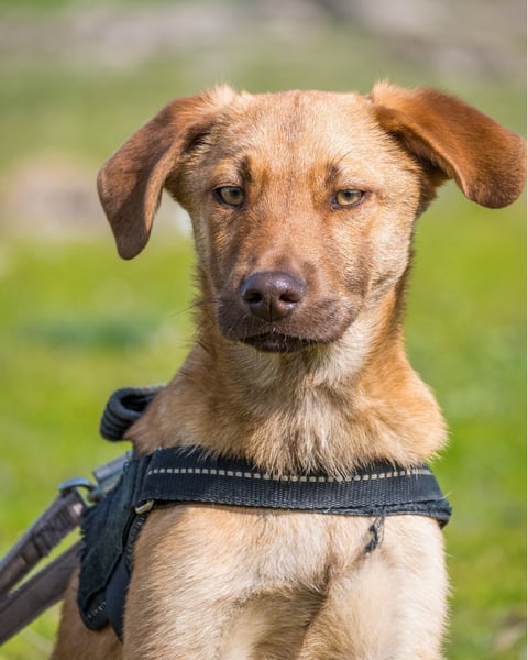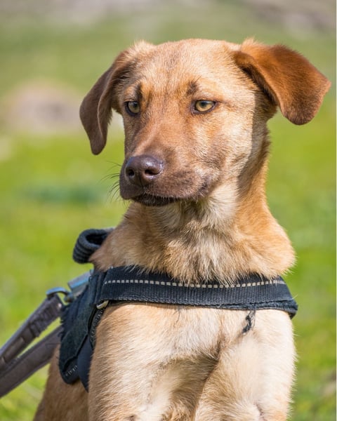 Taxi ist noch etwas ängstlich und braucht geduldige, einfühlsame Menschen, die ihm die Zeit geben, die er braucht, um anzukommen und Vertrauen zu fassen.