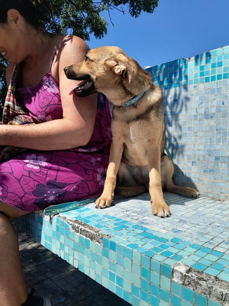 Iris hat bereits gelernt, an der Leine zu gehen und das große ‚Hunde-Außenklo zur Verrichtung ihrer großen und kleinen Notdurft zu nutzen.