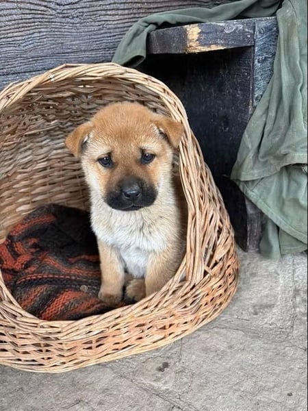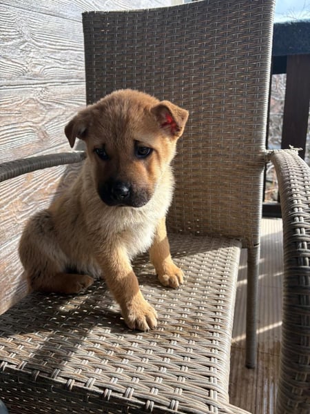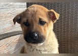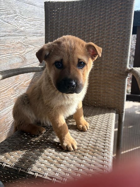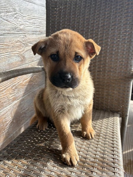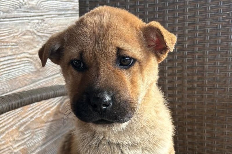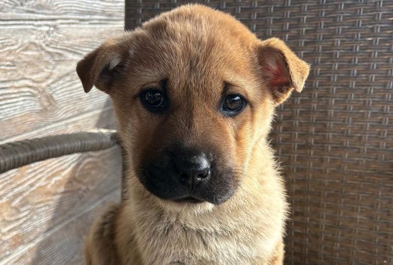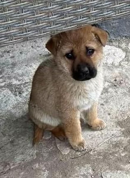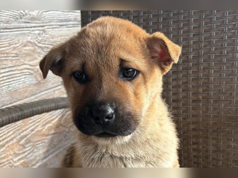 Monchou ist ein freundlicher, neugieriger Welpe – noch etwas vorsichtig, aber offen für Menschen und bereit, die Welt zu entdecken.
