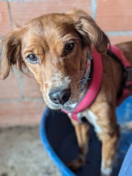 Sissi wurde ca. 2021 geboren und hat eine Schulterhöhe von etwa 45 cm. Sie ist gechippt und geimpft. Ins neue Zuhause wird sie kastriert reisen.