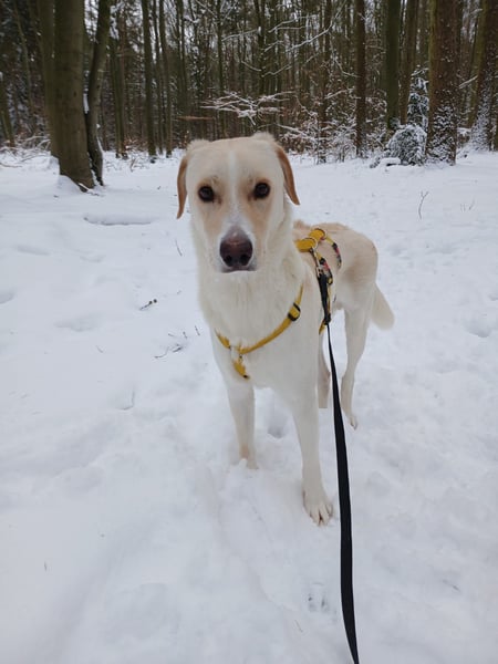 Lobo lebt seit Anfang Dezember in 31582 Nienburg/Weser auf einer Pflegestelle. Er ist ein freundlicher, junger Rüde, der sowohl Menschen als auch Artgenossen offen und sozial begegnet. Auf seiner Pflegestelle lebt er gemeinsam mit zwei Hündinnen, mit denen er sich gut versteht. In neuen oder ungewohnten Situationen zeigt er sich teilweise noch etwas unsicher, gewinnt jedoch zunehmend an Selbstvertrauen.
