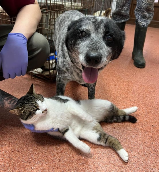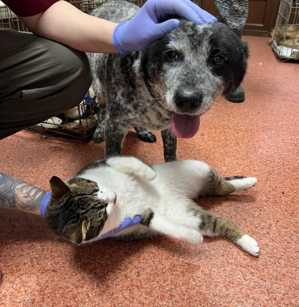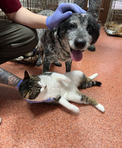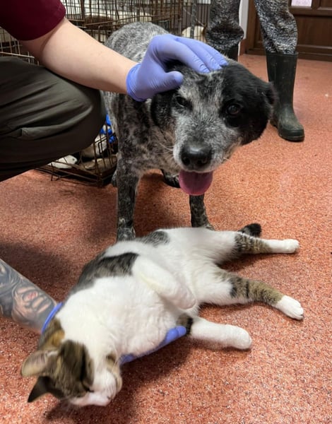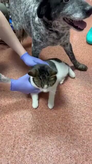 Da wir uns Sorgen um Kora machten, weil ihr Verhalten gar nicht so zu einem 5-6 Jahre alten Hund passen wollte, wurde sie in der Tierklinik vorgestellt. Dort wurde auch direkt ein Katzentest durchgeführt, den Kora mit Bravour bestanden hat.