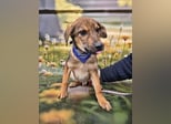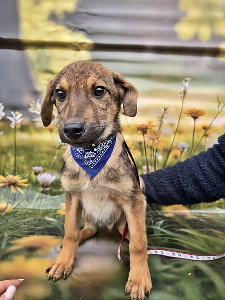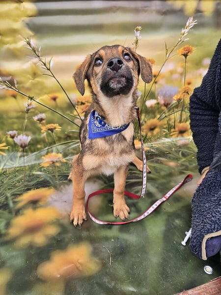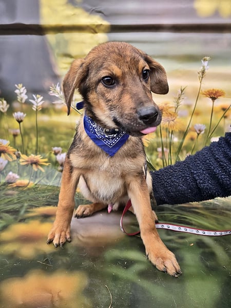 Boomer ist ein freundlicher und lieber Welpe und, seinem Alter entsprechend, verspielt.