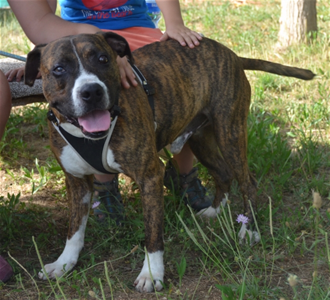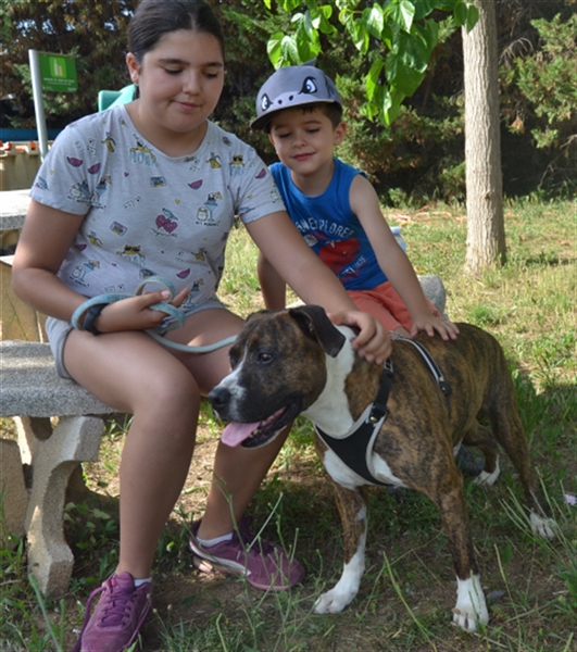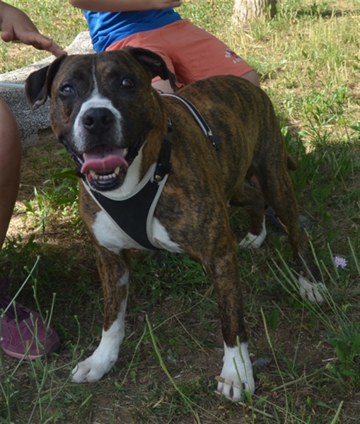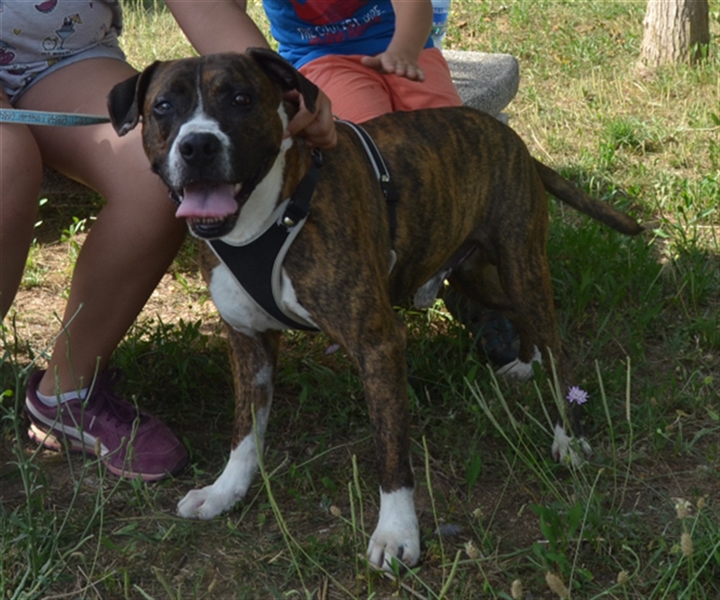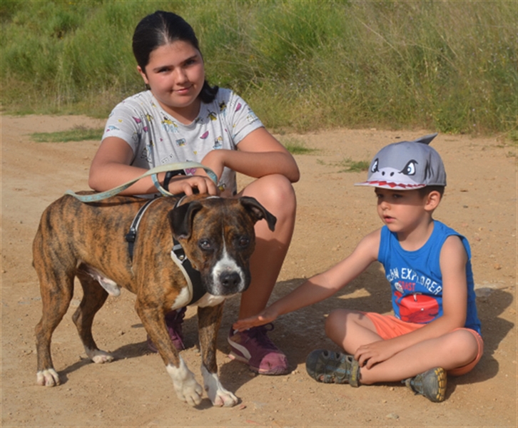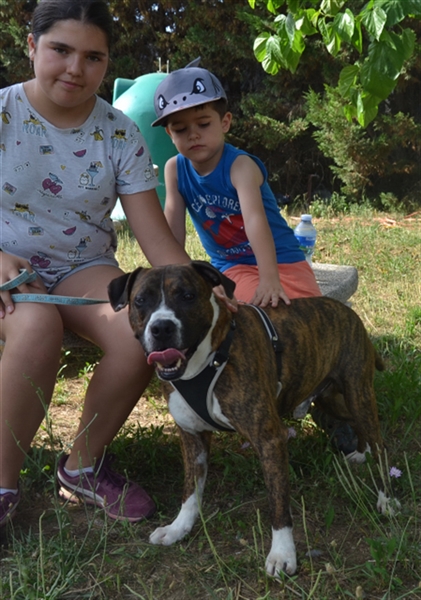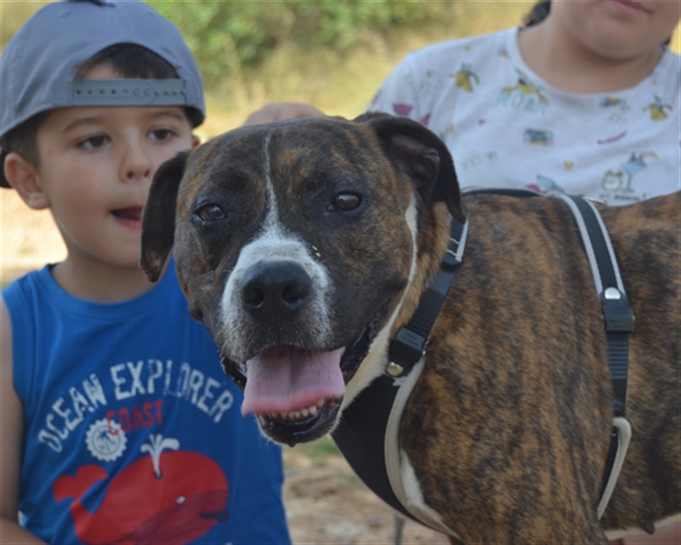 In diesen letzten Monaten bei uns, haben wir Santo sehr gut kennengelernt, und wir sind zufrieden mit seinen Fortschritten, und natürlich sehr stolz auf ihn. Nicht nur weil er ein perfekter Patient ist, der sehr schnell ‘heilt’, sondern weil er sich einfach vorbildlich benimmt. Heute ist Santo die Freude und die gute Laune in Hundegestalt! Er ist extrem lieb und verträglich. Er ist mit all seinen Hundekollegen befreundet, und er ist immer mit allem einverstanden … egal ob man ihn 3 Monate lang täglich spritzen muss, er lässt es ruhig über sich ergehen. Santo fährt gerne Auto, ganz ruhig und happy. Er geht gerne spazieren, egal ob in der Stadt oder auf dem Land. Leine, Halsband und Geschirr sind ihm vertraut. Und trotz seiner Sehbehinderung ist er entspannt. Santo mag uns Menschen und ist gerne mit uns zusammen. Egal ob wir es sind, unsere Freiwilligen oder auch fremde Menschen, Santo ist immer glücklich und dankbar für jegliche Zuneigung. Santos Leidenschaft ist das Ball spielen, und er ist auch sehr freundlich zu Kindern und freut sich über sie.