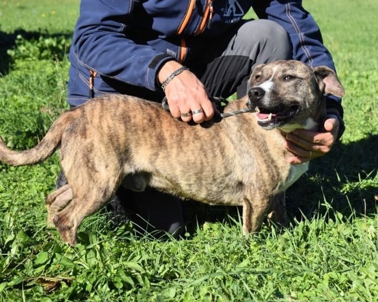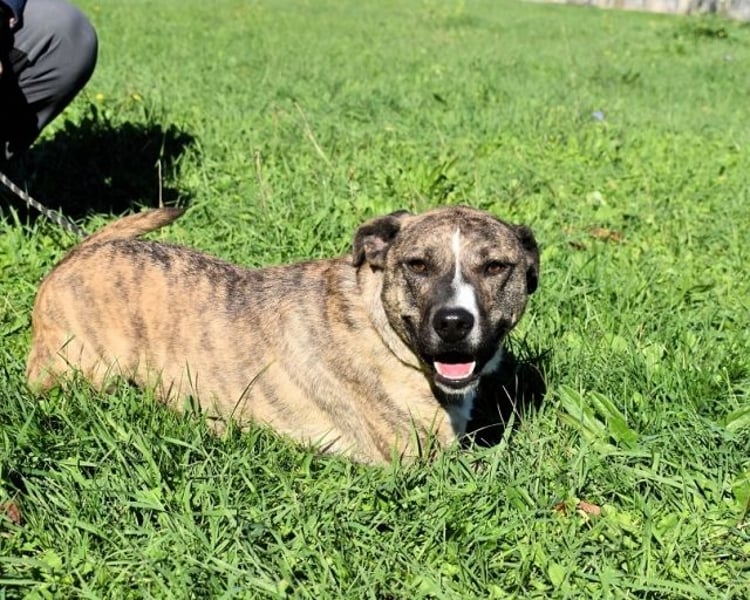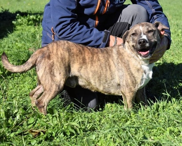 Darf ich mich ein bisschen vorstellen: ich bin noch ein junger Rüde und sehr hübsch gezeichnet, man nennt es gestromt, und mein weißes Lätzchen ist blütenrein und immer adrett. Natürlich bin ich ein Mischling aus allerlei interessanten Rassen und Eigenarten. Zu meinen guten zählt, dass ich fein an der Leine laufen kann und das auch ausgesprochen gern mit Euch täte. Hier ist nix mit lustig und naturnah, lasst Euch von den Fotos nicht täuschen. Kaum sind die netten Tierschützer mit ihren Kameras wieder weg, geht es sofort wieder zurück in die Box, in der ich zurzeit allein mein Dasein friste. Es gibt noch nicht mal einen Zellenkumpel zum gegenseitigen Warmhalten in den kalten und klammen Winterzeiten, ich lagere auf Beton. Könnt Ihr Euch das vorstellen? Das ist auch für jüngere Knochen nicht schön. Ansonsten bin ich verträglich und neugierig wie ein Eichkatzerl, das Interesse an allem hätte - doch was erlebe ich wohl in meiner Einzelbox? Da gibt es nichts zu entdecken oder zu erschnüffeln oder zum die Zeit vertreiben. Ich zähle dann halt jeden Tag. Einmal dunkel: wieder einer vorbei von wie vielen auch immer, die hier noch auf mich warten... Mir steht der Sinn schon noch nach einem kleinen bisschen mehr.