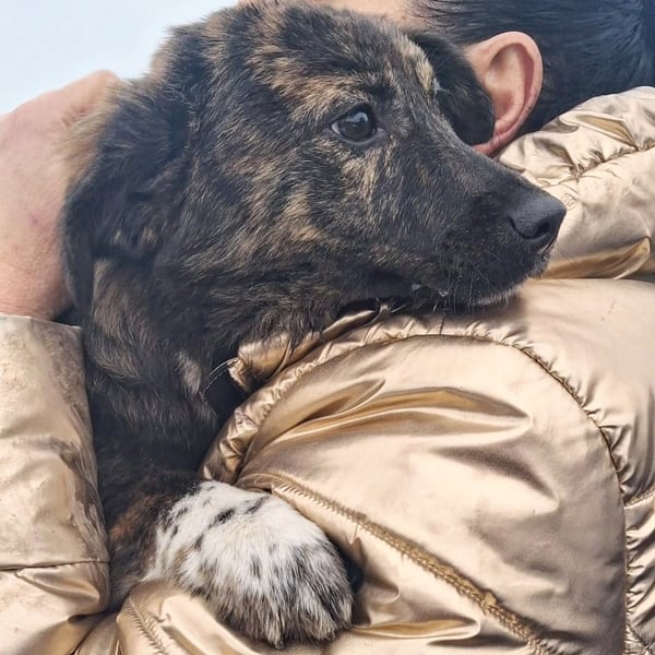 Die etwa 8 Monate alte Hündin schien auf Hilfe zu warten, als sie von einer Freundin Marianas entdeckt wurde. Als sie den Ruf hörte, rannte sie direkt in die Arme ihrer Retterin und ließ sich ohne Zögern anheben. Es war, als ob sie endlich die Erleichterung und Sicherheit gefunden hatte, nach der sie suchte.
