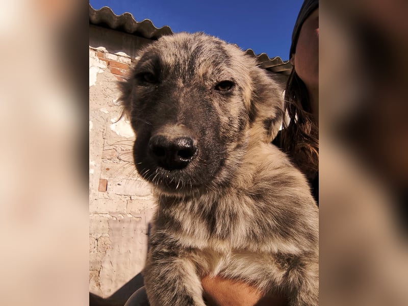 Der kleine Hoppi ist ein neugieriger und aufgeweckter Welpe, der mit großen Augen die Welt entdeckt. Anfangs etwas vorsichtig, fasst er schnell Vertrauen – besonders, wenn man ihm mit Ruhe, Geduld und einem Leckerchen begegnet. Dann zeigt er sich fröhlich, verspielt und verschmust und genießt jede Streicheleinheit.