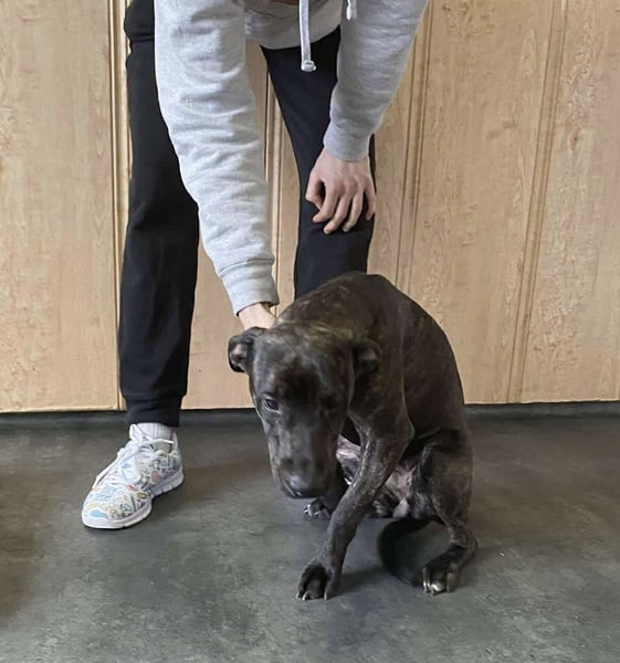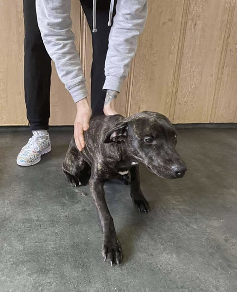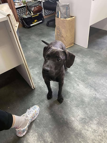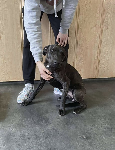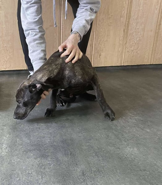 Das außerordentlich hübsche Welpenmädchen ähnelt sehr einem Plott Hound. Wir vermuten daher einen Jagdhund in ihren Genen. Adidas ist neugierig auf das Leben und einfach herrlich unbedarft und sehr menschenorientiert. Sie wird ihren neuen Besitzer mit ihrem aktiven Wesen fit halten und glücklich machen. Stand 09.02.2026 war sie 43 cm und wog 14 kg. Die hübsche Maus wird also noch etwas wachsen und Gewicht zulegen; ein Riese wird sie allerdings nicht.