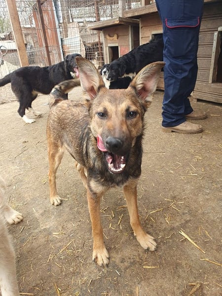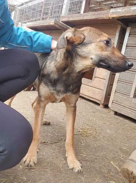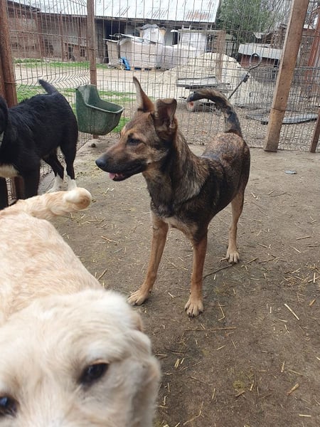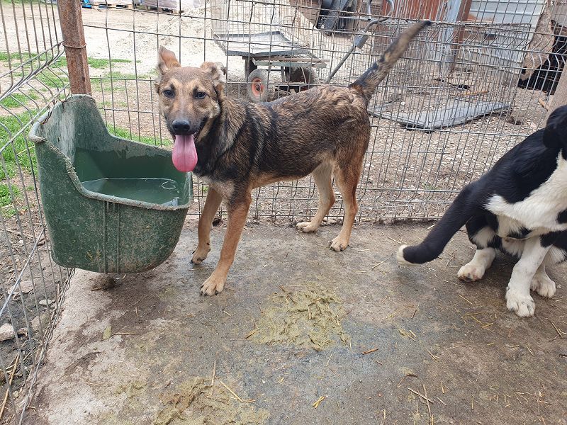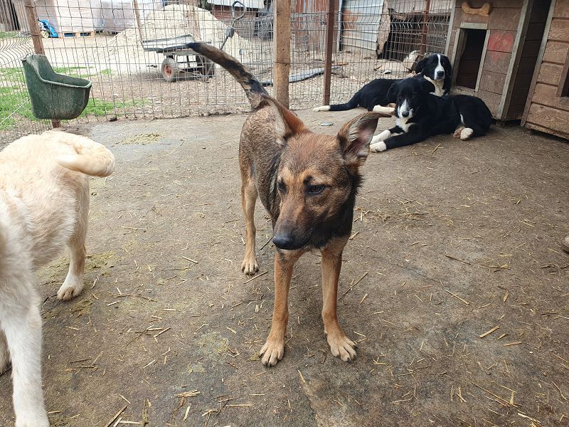 Die braun gestromte Dana mit dem schlanken Körperbau und den großen Ohren ist eine sehr zutrauliche und freundliche junge Dame. Sie sucht aktiv den Kontakt zu uns und lässt sich gerne streicheln. Allerdings sehnt sie sich genau wie ihre Zwingerkollegin Paloma nach mehr Abwechslung. Sie würde gerne raus und die Welt jenseits des Zwingers entdecken. Dana ist noch jung und auf jeden Fall ein aktiver Typ. Wer ihr ein Zuhause bietet, in dem sie endlich die Zuneigung und Aufmerksamkeit bekommt, die sie braucht, wird sicherlich eine treue und liebevolle Hündin an seiner Seite haben.