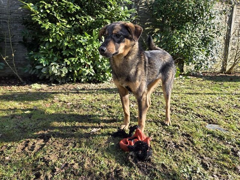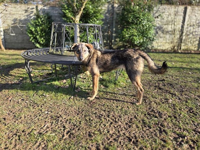 Fee kam Mitte Februar zu uns und lebt nun in einer Pflegestelle in Köln-Ostheim. Diese junge Hündin aus Rumänien ist eine ruhige, eher zurückhaltende Seele, die die Welt in ihrem eigenen Tempo entdecken möchte. Fremden begegnet sie anfangs vorsichtig, doch wenn sie Vertrauen gefasst hat, zeigt sie sich als sanfte und treue Begleiterin. Mit anderen Hunden – ob jung oder älter – ist sie verträglich und begegnet ihnen freundlich. An der Leine läuft sie bereits gut und orientiert sich schön an ihrem Menschen und den andren im Haushalt. Sie ist stubenrein und zeigt sich im Alltag angenehm und unkompliziert. Am liebsten liegt sie im Garten oder auf der Terrasse und beobachtet entspannt ihre Umgebung. Autofahren gehört momentan noch nicht zu ihren Lieblingsbeschäftigungen, dennoch bleibt sie dabei ruhig und brav. Auch hat sie noch leichte Schwellenängste und zögert manchmal bei Türschwellen oder ungewohnten Untergründen. Mit Geduld und liebevoller Begleitung wird sie hier sicher weiter an Selbstvertrauen gewinnen. Hier helfen ein paar besondere Leckerchen, damit lässt sie sich wunderbar motivieren und bestärken. Für diese besondere junge Hündin wünschen wir uns ein einfühlsames Zuhause mit geduldigen Menschen, die ihr die Sicherheit geben und sie Schritt für Schritt ankommen lassen. Ein Garten wäre ihr Traum, ist aber kein Muss, solange sie regelmäßig draußen entspannen darf.