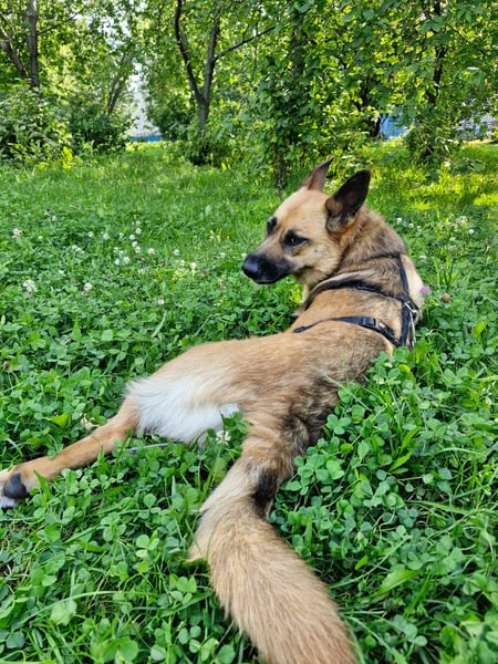 Knopa wurde als junge Hündin auf der Straße in Russland gefunden und lebte zunächst bei einem älteren Herrn, der sich liebevoll um sie kümmerte. Nach seinem Tod kam sie ins Tierheim.