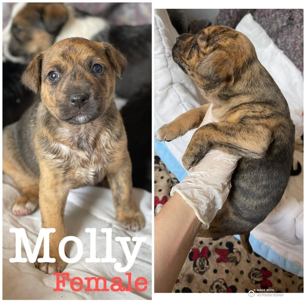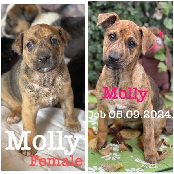 Die Mama und fünf Geschwister haben bereits ein Zuhause gefunden. Die wunderschöne Molly wartet noch auf ihre Menschen.