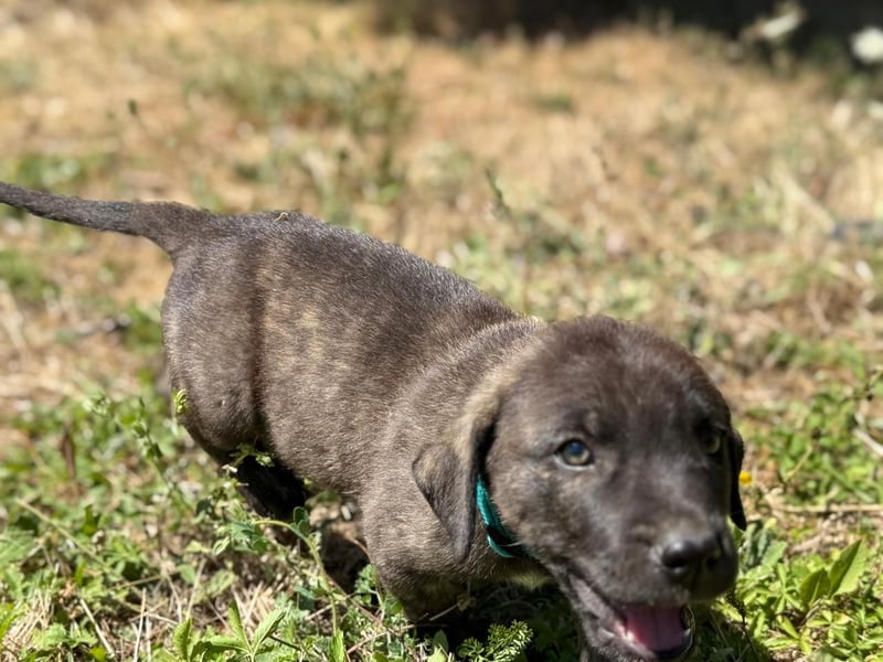 Welpentypisch ist er sehr verspielt, anhänglich, neugierig und ist bald bereit, in sein Für-immer-Zuhause zu ziehen.