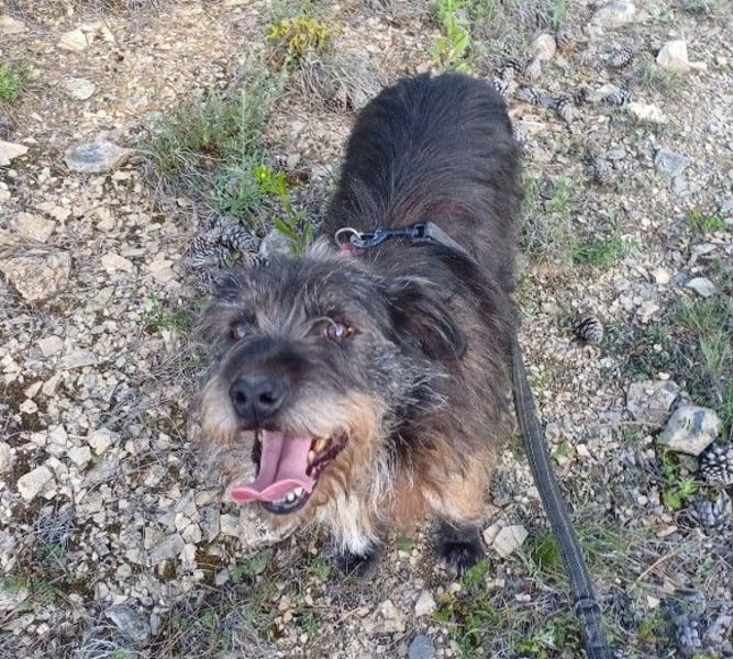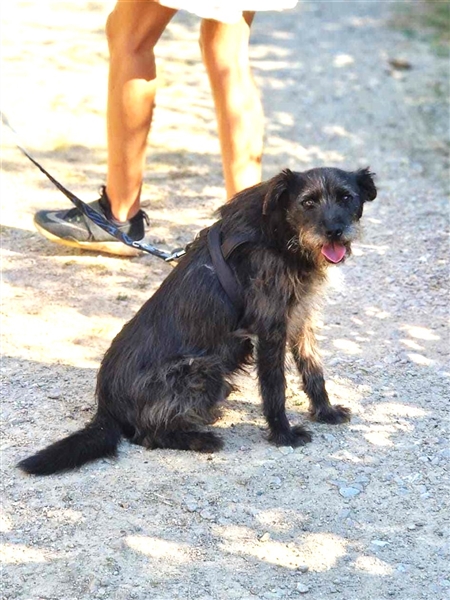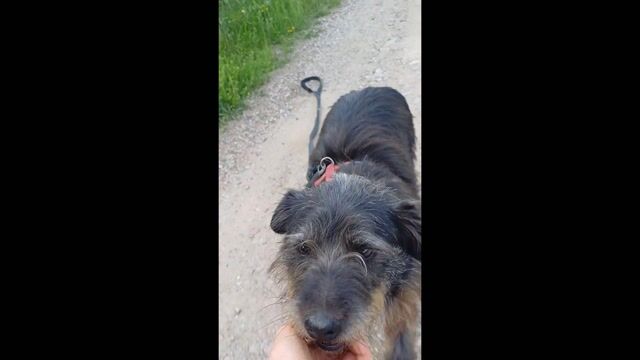 Durch die Spaziergänge hat Toby schon erste Erfahrungen mit Halsband und Leine gemacht und geht auch ganz ordentlich an der Leine. Generell läuft er bei den Spaziergängen aber frei, da er immer in der Nähe der Tierschützerin bleibt und folgsam ist, wenn sie ihn ruft.