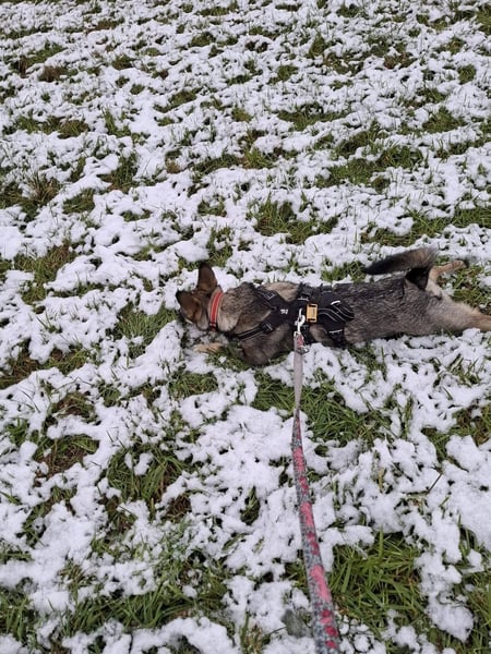 Mit konsequenter Führung meistere ich Situationen wie z.B. viel Verkehr oder das Vorbeigehen an Kindergartengruppen gut oder nach dem Motto: Augen zu und durch. Die Hundetrainerin sagt, dass ich den großen Vorteil besitze, dass ich mich eng an meine Menschen binde und dann an ihnen orientiere.