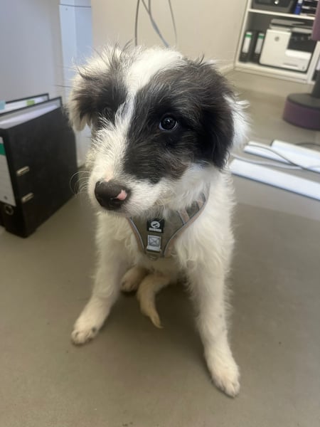 Matti fährt problemlos im Auto mit und kennt zudem den Alltag als Bürohund. Trotz seines jungen Alters zeigt er sich aufmerksam und beobachtet seine Umgebung genau.