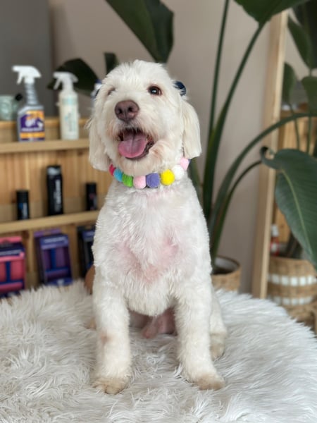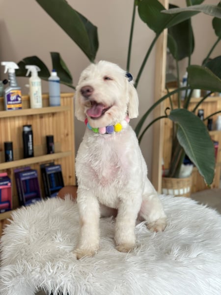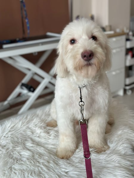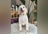 Seinen ersten Besuch beim Hundefriseur hat der Rüde bereits mit Bravour gemeistert und ist jetzt bereit, die Reise in sein Für-immer-Zuhause anzutreten.