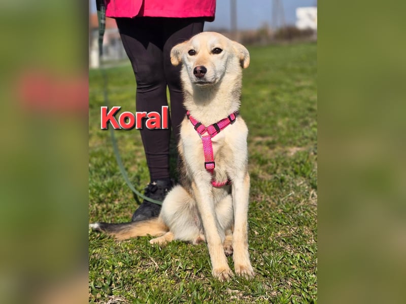 Koral wurde im Alter von etwa fünf Monaten ausgesetzt aufgefunden. Trotzdem hat sie sich ihr freundliches Wesen bewahrt und wartet nun auf Menschen, die ihr ein sicheres, aktives und liebevolles Zuhause schenken.