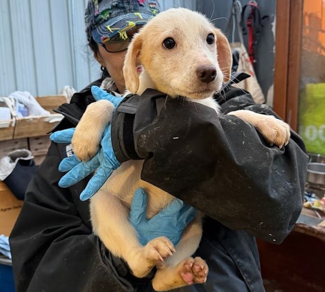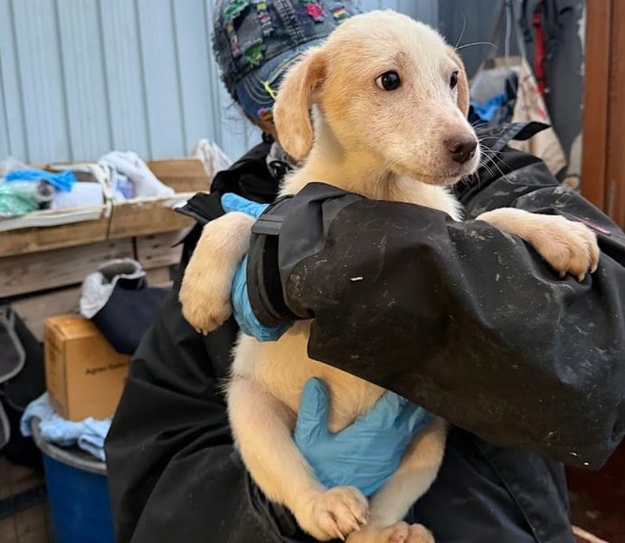 Vorgeschichte: Anka wurde ungefähr im Oktober 2025 geboren und teilt das Schicksal ihrer Geschwister. Die kleine Hündin wurde verlassen im Hinterhof einer Wohnanlage entdeckt, wo sie sich zwischen gelagerten Baumaterialien versteckt hielt. Zum Glück wurden die Welpen rechtzeitig von einer tierlieben Dame gefunden und in die Obhut von Maria übergeben. Nun lebt Anka im Shelter und wartet sehnsüchtig auf den Tag, an dem sie den harten Betonboden gegen ein weiches Körbchen eintauschen und ihr neues Leben bei einer eigenen Familie beginnen darf.