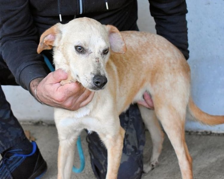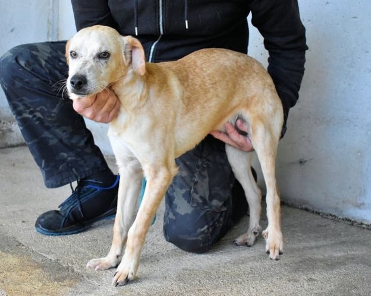 Genau so arbeitet Dauerstress im Hundekörper. Und genauso sieht Boris aus. Boris ist seit ca 4 Monaten (Stand Dez. 25) im Lager. Heute zeigte er ein Bild, das wehtut, wenn man es wirklich versteht: 49 cm, sehr aufgeregt, fast hysterisch, zwanghaftes Bellen, dabei hyperaktiv und gleichzeitig erschöpft wirkend. Er bellte gegen Menschen, gegen seinen Zwingerpartner und gegen die Hunde außen herum – ein Verhalten, das im Lager „weit verbreitet“ ist, weil dort viele Nervensysteme permanent auf Hochspannung laufen. So sehr, dass man ihn, um überhaupt arbeiten zu können, die ganze Zeit festhalten musste, weil er überhaupt nicht ruhig wurde.