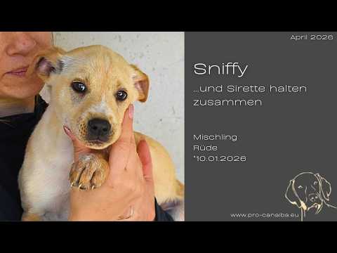 Guten Tag liebe Menschen, ich bin Sniffy. Und ich bin nicht alleine hier, denn meine Schwester Sirette ist bei mir. Wir passen gut aufeinander auf. Das ist auch wichtig, denn dieser Ort hier ist ziemlich groß und ziemlich laut. Wir sind vor ein paar Wochen hier angekommen und dachten zuerst, das wäre vielleicht nur kurz. So ein Zwischenstopp oder so. Aber dann haben wir gemerkt, dass die Türen hier immer zu bleiben. Es bellen ganz viele Hunde. Manche hören gar nicht mehr auf. Und manchmal weinen auch welche. Ich glaube, das sind die, die gerade erst verstanden haben, dass sie hierbleiben müssen. Sirette und ich bleiben dann einfach nah beieinander. Ich versuche, ein bisschen mutig zu sein … für uns beide. Und eigentlich bin ich das auch. Ich finde Menschen interessant und würde sie gerne besser kennenlernen. Aber am Anfang weiß ich noch nicht so genau, ob alles wirklich sicher ist. Die anderen Hunde haben gesagt, dass es eine Möglichkeit gibt, hier wieder rauszukommen. Wenn Menschen unsere Bilder sehen und denken: „Der passt zu mir.“ Das wäre wirklich gut.