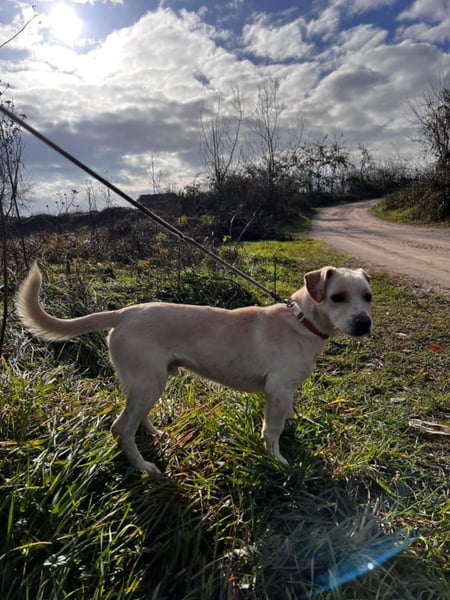 Ich bin ein verspielter, charmanter junger Kerl, voller Lebensfreude und Glück. Immer mit einem Lächeln im Gesicht genieße ich Spaziergänge und Spielrunden mit anderen Hunden. An der Leine laufe ich problemlos, und auch mit anderen Hunden verstehe ich mich gut. Wenn du mich mit deinem Hund testen möchtest, gib einfach Bescheid!