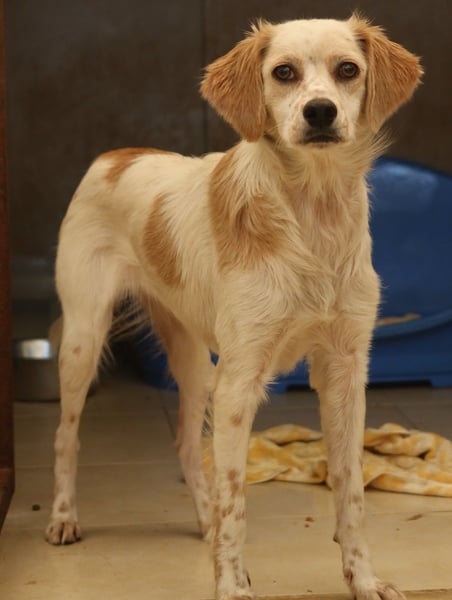 Mit ihrem feinen, cremeweißen Fell und den goldbraunen Abzeichen ist Islet eine echte Schönheit – zierlich, elegant und mit einem Blick, der mitten ins Herz geht. Islet ist eine zarte, freundliche Hundedame mit einem sanften Wesen. Anfangs zeigt sie sich etwas schüchtern und vorsichtig, doch sobald sie merkt, dass man es gut mit ihr meint, kommt auch ihre neugierige Seite zum Vorschein. Trotz ihrer zurückhaltenden Art zeigt sie einen fröhlichen, aktiven Charakter.