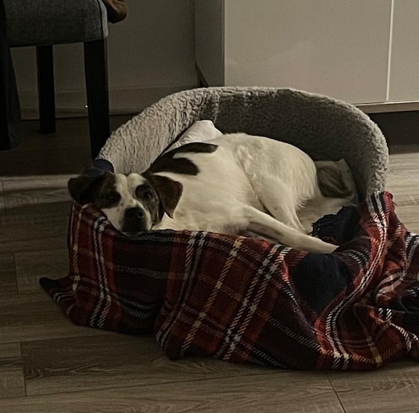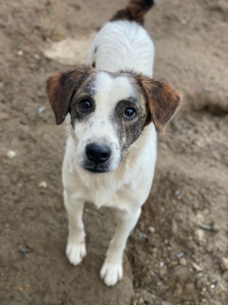Blesso ist ein kastrierter Rüde mit einem ganz besonderen Merkmal: Seine Rute ist nur halb so lang wie normal – was seinem Charme aber keinen Abbruch tut! Er hat überwiegend weißes, kurzes Fell mit einer wunderschönen dunklen Zeichnung im Gesicht. Sein treuer Hundeblick erzählt schon viel über sein Wesen. Blesso zeigt sich auf seiner Pflegestelle als verträglicher, lieber, neugieriger und freundlicher Hund. Er zeigt sich offen gegenüber Artgenossen mit einem ausgeglichenen Sozialverhalten. Menschen gegenüber ist er freundlich und ist ein absoluter Kuschelbär. Für Blesso suchen wir ein einfühlsames Zuhause mit Menschen, die ihm Sicherheit, Geduld und eine klare, souveräne Führung bieten können. Eine gut ausgesuchte Hundeschule oder ein erfahrener Hundetrainer wären auf seinem weiteren Weg eine große Unterstützung – denn Blesso möchte noch viel lernen.