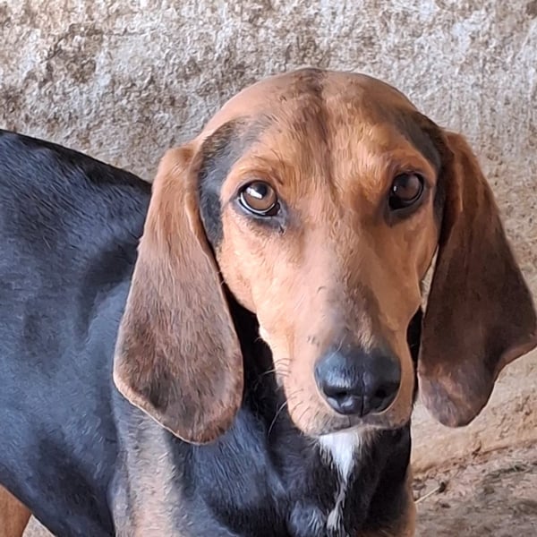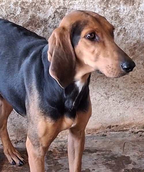 Camelia trägt ein dreifarbiges Fellkleid und hat Ähnlichkeiten zu einem Jagdhund. Sie hat einen weißen Fleck auf der Brust und süße Schlappöhrchen. Camelia ist eine freundliche Hundedame mit einer schönen mittleren Größe. Sie ist dem Junghundealter entwachsen und zeigt sich als charmante Hündin. Sie benötigt anfangs noch etwas Zeit, um aufzutauen. Sie kennt sogar schon Katzen und zeigt sich auch mit Artgenossen verträglich.