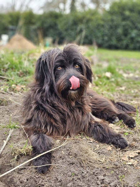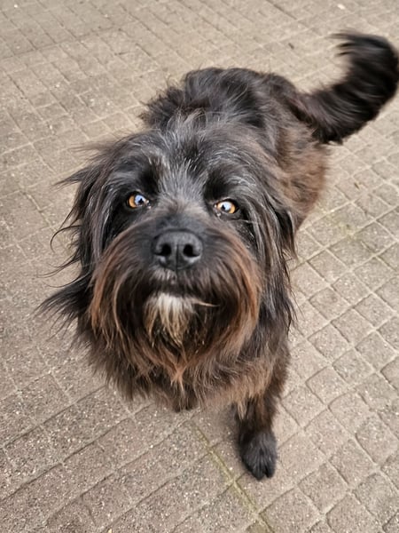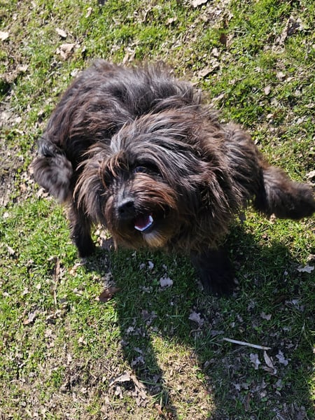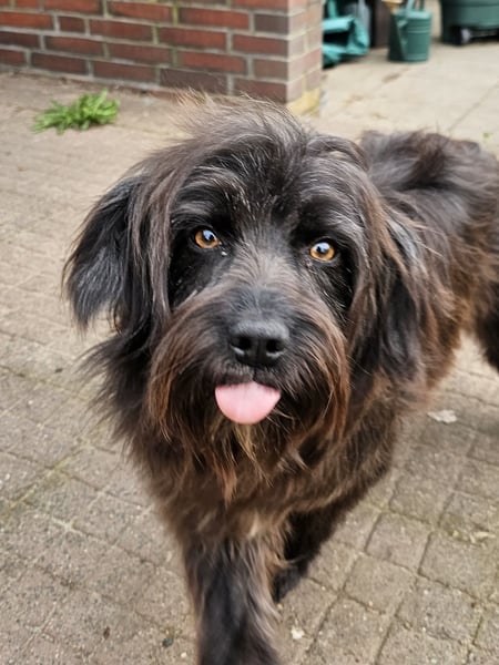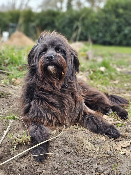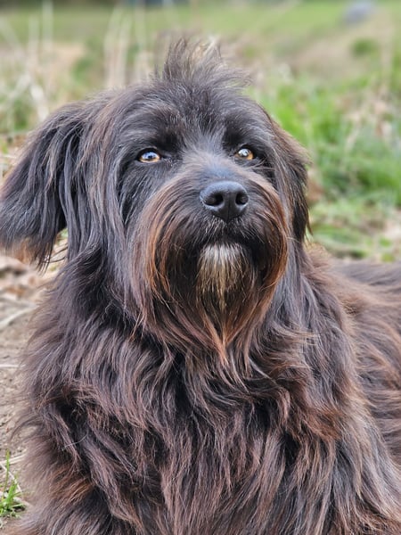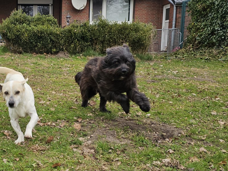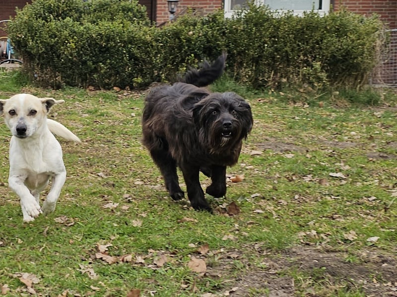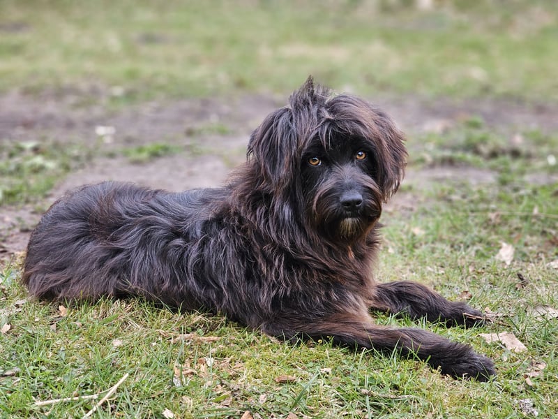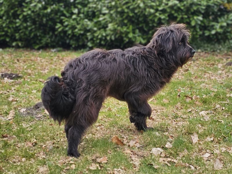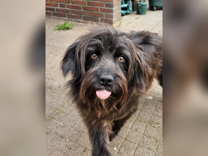 Die wuschelige Schönheit ist eine Hündin, die mit ihrem Menschen durch dick und dünn geht. Sie orientiert sich am Menschen und mit ein paar Leckerlis lässt sie sich zu vielem motivieren. Auch für Hundesport wäre sie bestimmt zu begeistern.
