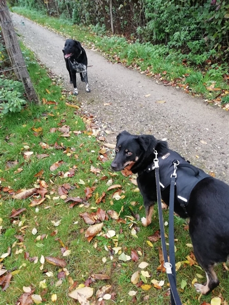 Draußen, bei den Gassi Runden liegt Dalinas Problem. Sie ist unsicher. Nicht ängstlich. Da sie so lange im Shelter gelebt hat und immer alle Entscheidungen für sich treffen musste, ist es die Aufgabe der Menschen ihr zu zeigen, dass wir dafür zuständig sind. Sie hat keine Angst draußen und freut sich auf jeden Spaziergang. Da sie schon ein wenig Artrose in den Vorderbeinen hat müssen die Spaziergänge auch nicht sehr lang sein.