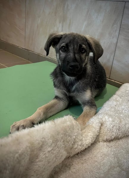 Glennie wurde eines Morgens im August 2025 ganz allein von den freiwilligen Helfern vor dem Tierheim Free Amely gefunden.