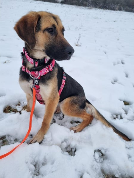 • Grundkommandos abrufbar: Sitz, Platz, Bleib werden beherrscht, Abruf in Anfängen