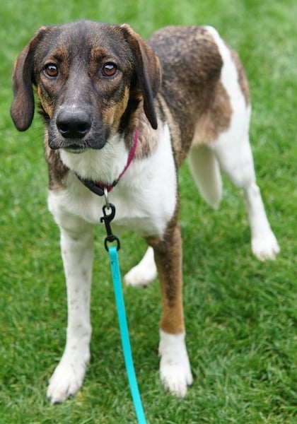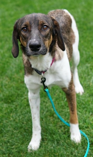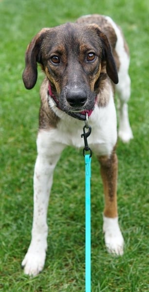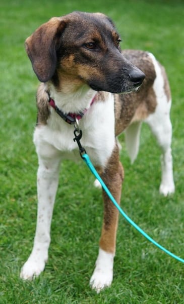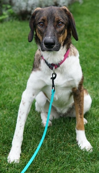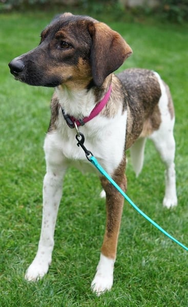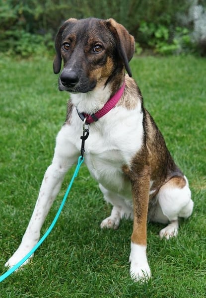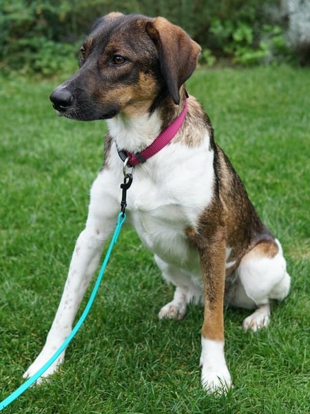 Diona ist eine sensible junge Hündin, der es noch schwerfällt, Vertrauen zu fassen. Auf ihrer jetzigen Pflegestelle in Deutschland lebt sie mit einer weiteren Hündin zusammen und zeigt sich dort als sozial und gut verträglich. Spaziergänge meistert sie mittlerweile richtig gut – dabei gewinnt sie zunehmend Sicherheit und kann ihre Ängste Schritt für Schritt überwinden.